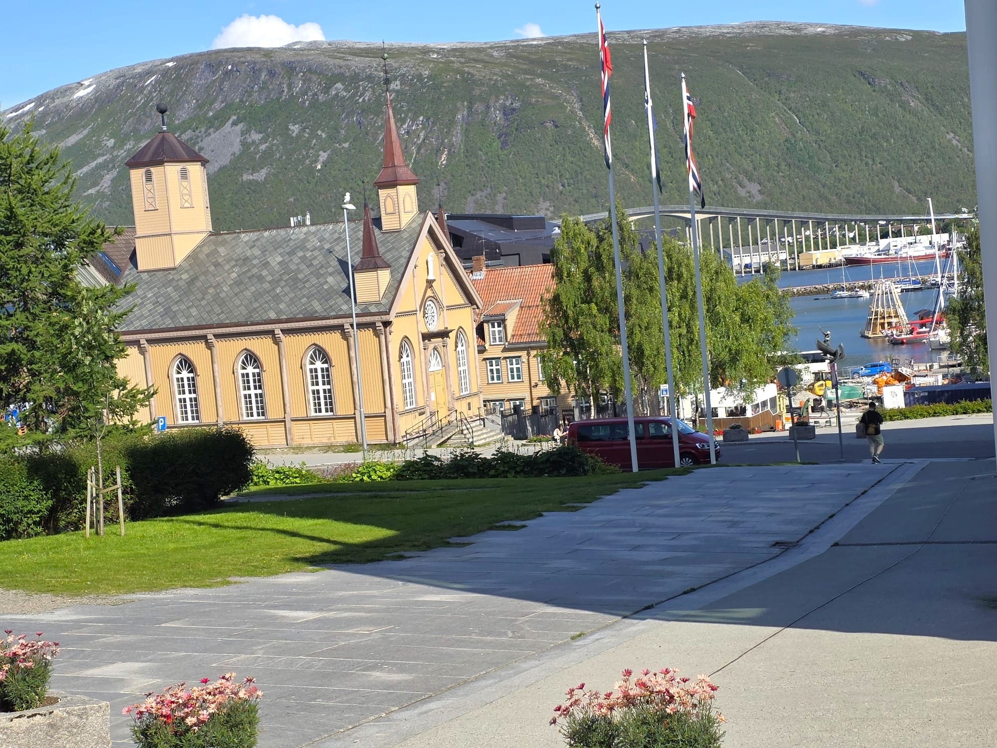 Entlang der zerklüfteten, nord-norwegischen Fjordlandschaft verlief die Route über Olderdalen, per Fähre nach Lyngseidet und Breivikeidet bis nach Tromsø. Die größte Stadt nördlich des Pokarkreises konnte nachmittags erkundet werden – besonders das Polar-Museum und die Eismeerkathedrale waren Hingucker! Nächtigung in Tromsø.