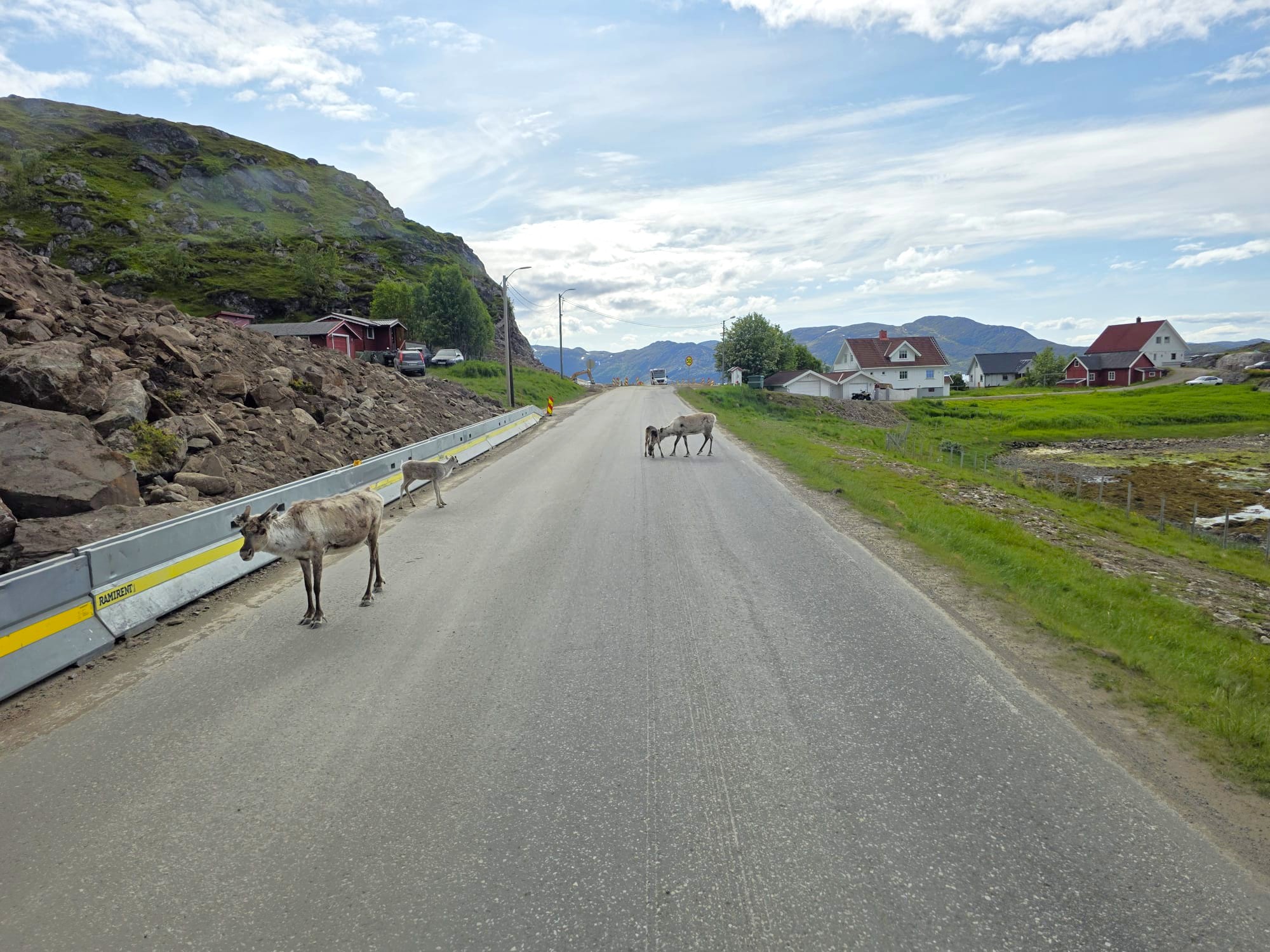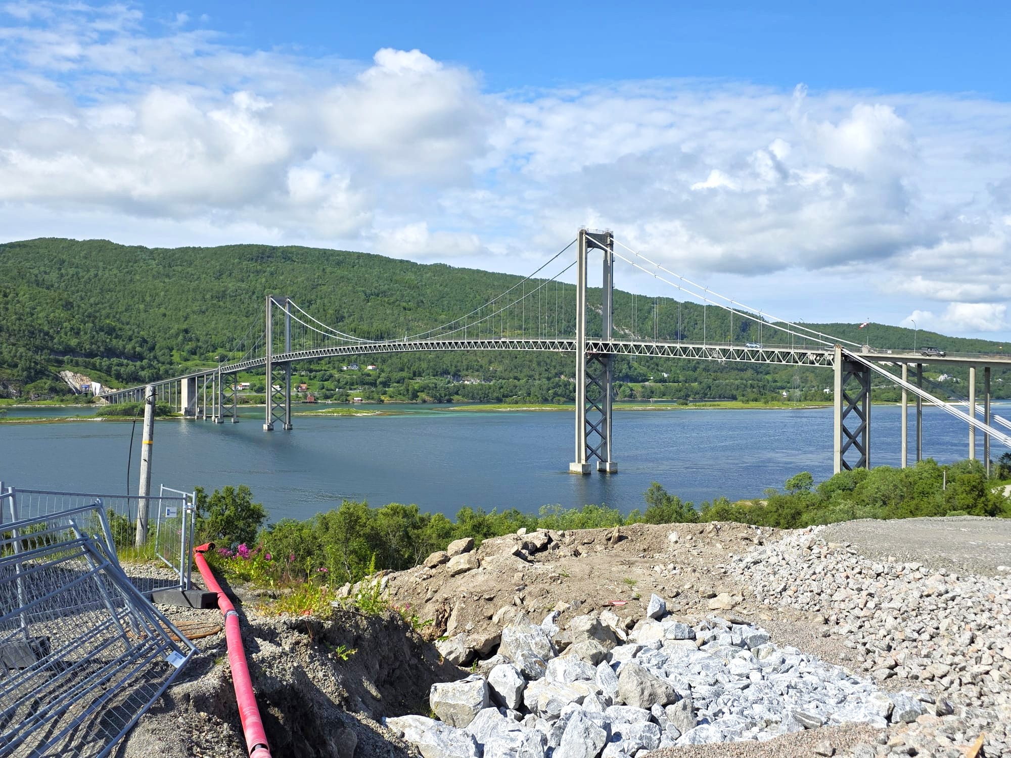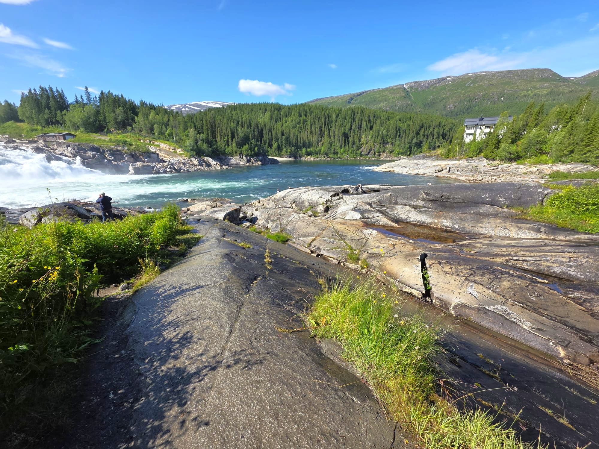 Auf unserem Weg nach Mo I Rana überquerten wir zum zweiten Mal den Polarkreis. Per Fähre von Moskenes nach Bodø, über eine brückenreiche Strecke weiter nach Fauske, durch das imposante Salzgebirge ans Tagesziel Mo I Rana, direkt am lachsreichen Fluss Nordrana gelegen.